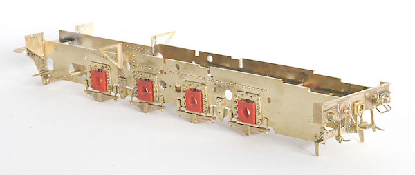 Die Rahmen bestehen vollständig aus Messing mit Zurüstteilen aus dem Hause Bauer. Die Rahmenschrauben (300 Stk) werden im Modell mit M0,6 mm Schrauben mit einer SW von 1mm nachgebildet. Alle Achsen können gefedert werden, mit den Kunststoff-Achslagersteinen von Munz/Schnellenkamp. Für die Pufferbohle liegen dem Bausatz gefederten Puffer, gefräste Pufferplatten, Bremsschläuche und Rangiertritt bei. Weiters gehören zu dem Bausatz auch noch ein Bremszylinder und die Schienenräumer. An allen 8 Räder sind die Bohrungen für Kugelstromabnehmer vorbereitet, 4 Stk. liegen dem Bausatz bei.